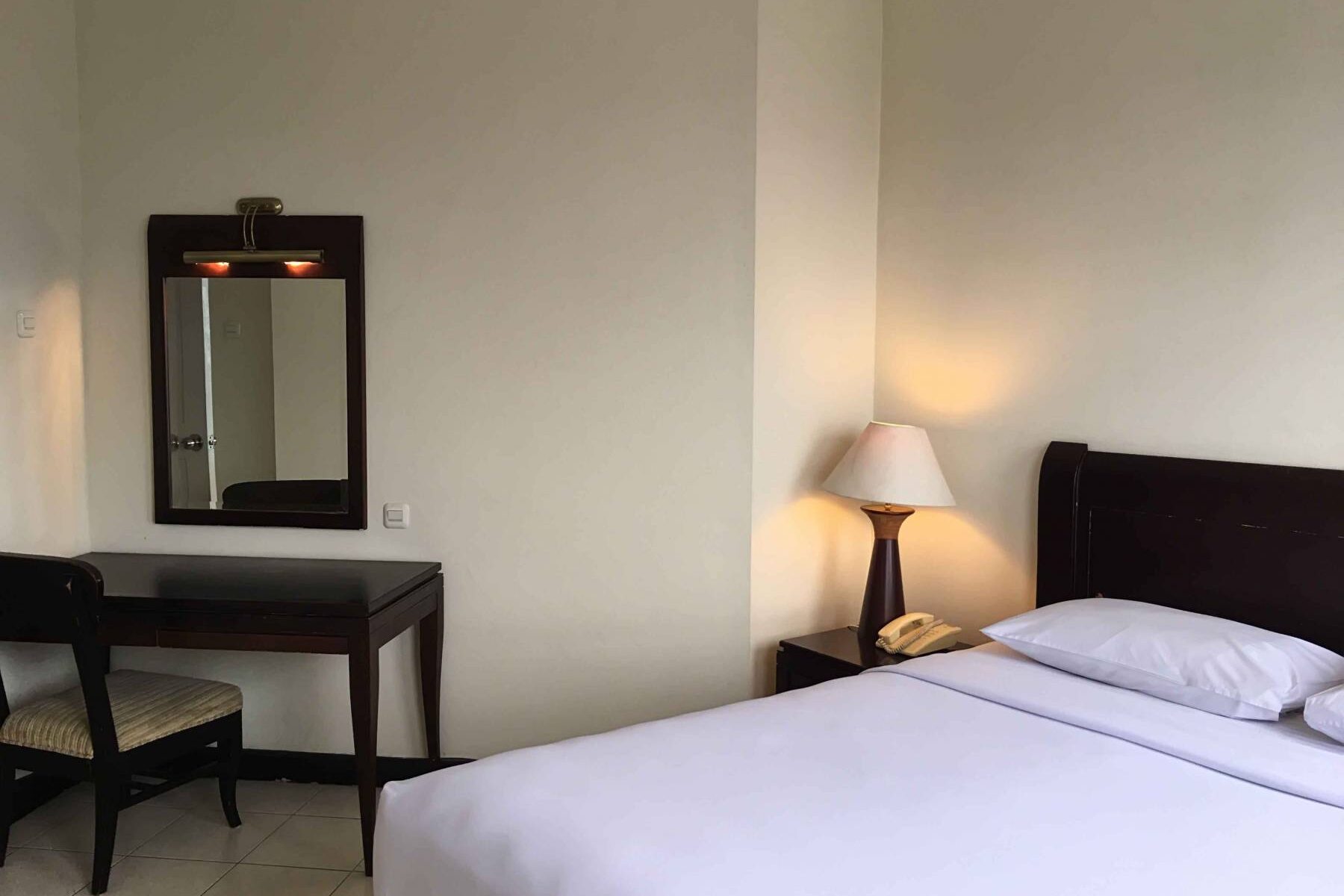 142 sqm spacious suite with 1 (one) queen bed and 4 (four) single bed completed with air conditioned with individual thermostat, dining room, living room, coffee & tea maker facility, LCD TV with 62 channels, safe deposit box and broadbrand internet connection.